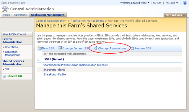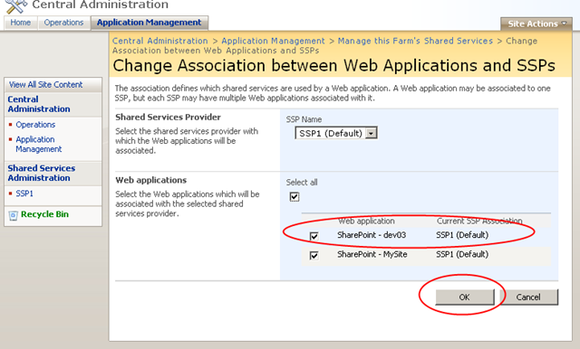 1. Web applications are associated with SSP’s in central administration. Select Shared Services Administration